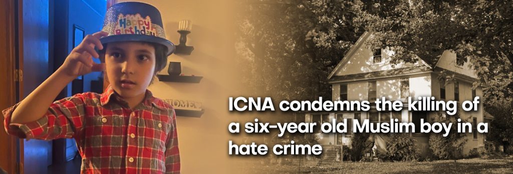 ICNA strongly condemns the killing of six-year old Wadea Al-Fayoume and the stabbing of his mother Hannan Shahin by their landlord, for no reason but pure hate, all because of their Palestinian background.