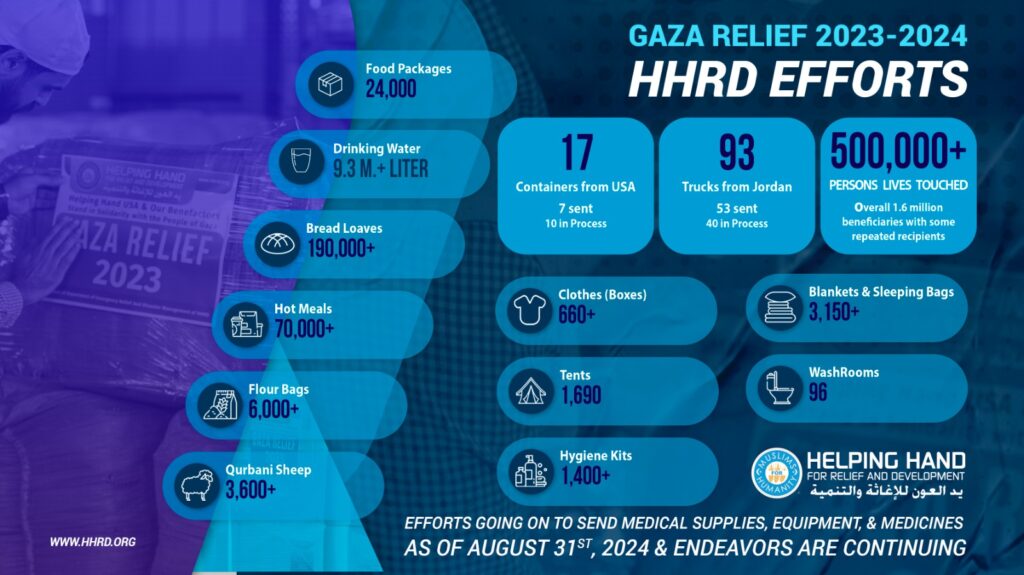 Since October 2023, Helping Hand for Relief and Development (HHRD) has been at the forefront of humanitarian efforts in Gaza, delivering critical aid to over half-a-million fellow human beings through multiple rounds of service. In the face of ongoing hostilities and devastation, HHRD’s relentless dedication has ensured that those affected receive the support they need to survive with dignity.